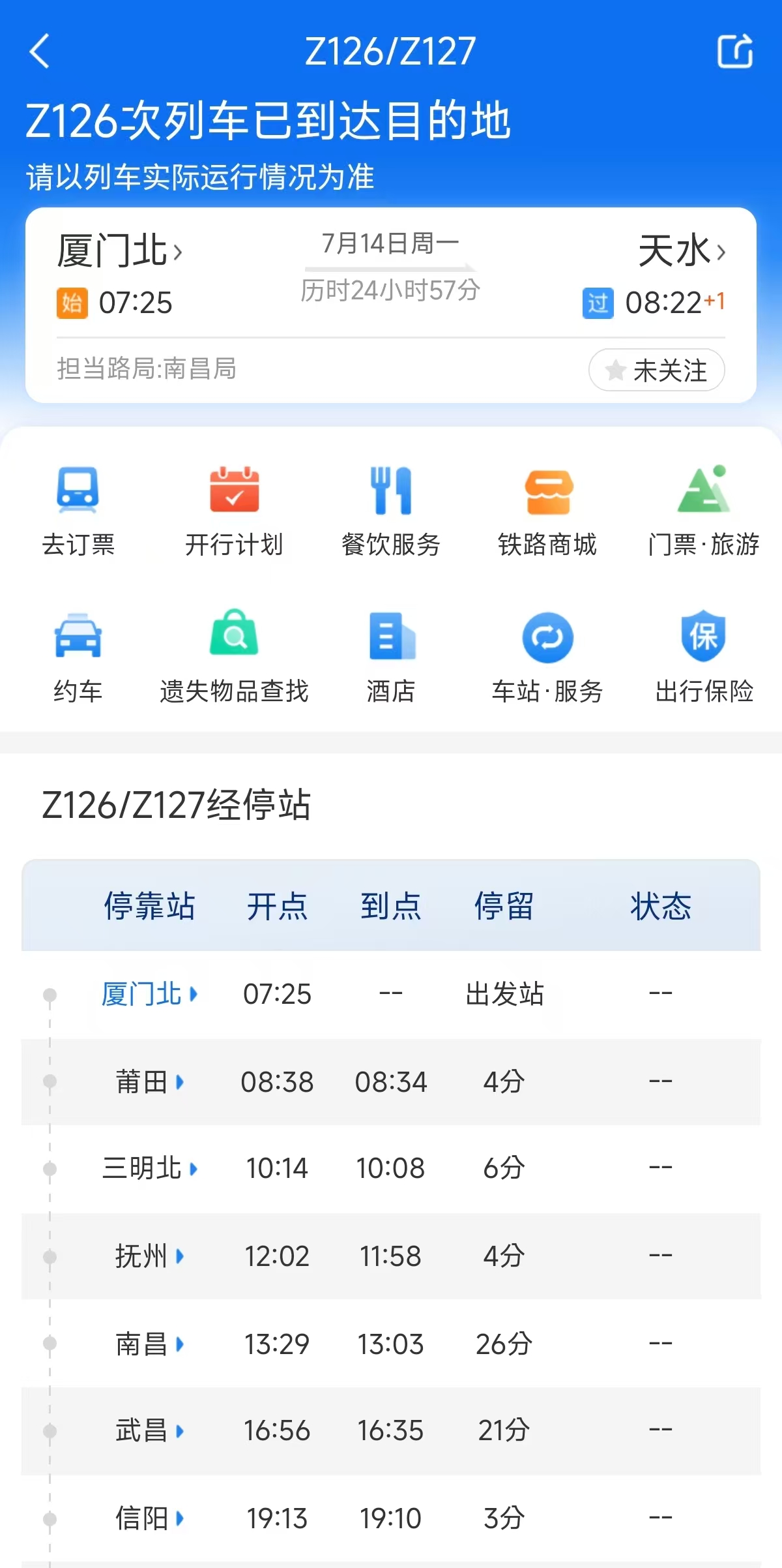 7月14日,小学期结束的第一天,凌晨5:25,天还没有亮我们便背起行囊前往厦门北站乘坐Z126/Z127列车前往宝鸡进行换乘。