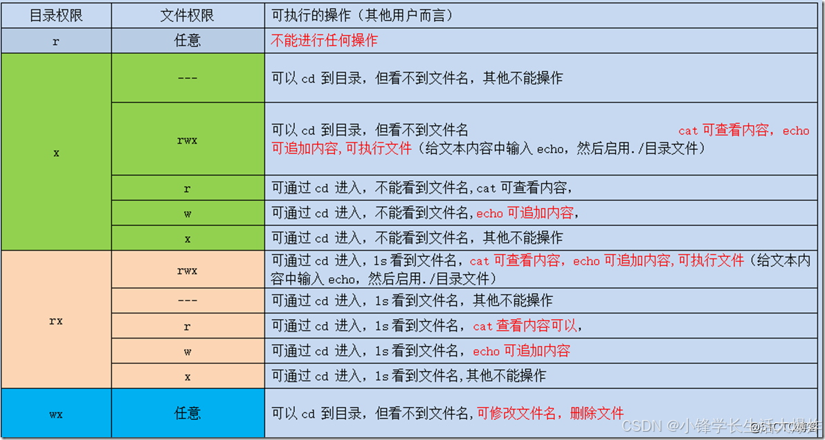 权限标识符基本原则是:文件类型(只占一位,d表示这是个目录)/文件所有者/同一个组的用户/其他用户