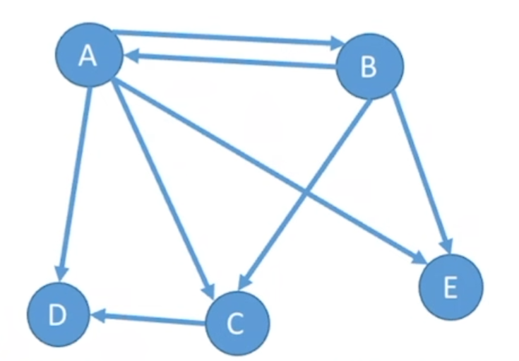 $E$={$<A,B>,<A,C>,<A,D>,<A,E>,<B,A>,<B,C>,<B,E>,<C,D>$}