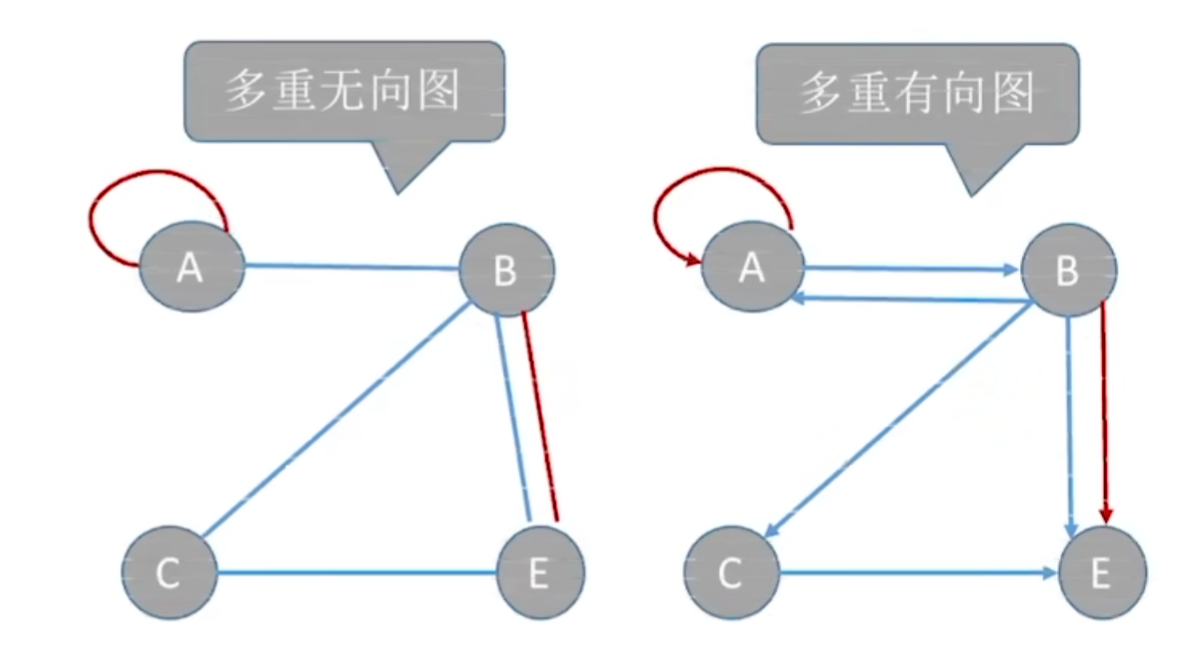 图G中某两个结点之间的边数多于一条,又允许顶点通过同一条边和自己关联,则图G为多重图