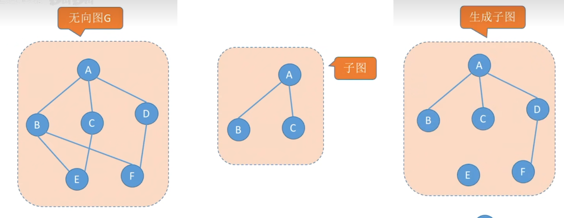 设有两个图G=(V,E),G’=(V’,E’),若V’是V的子集,且E’是E的子集,则称G’是G的子图
