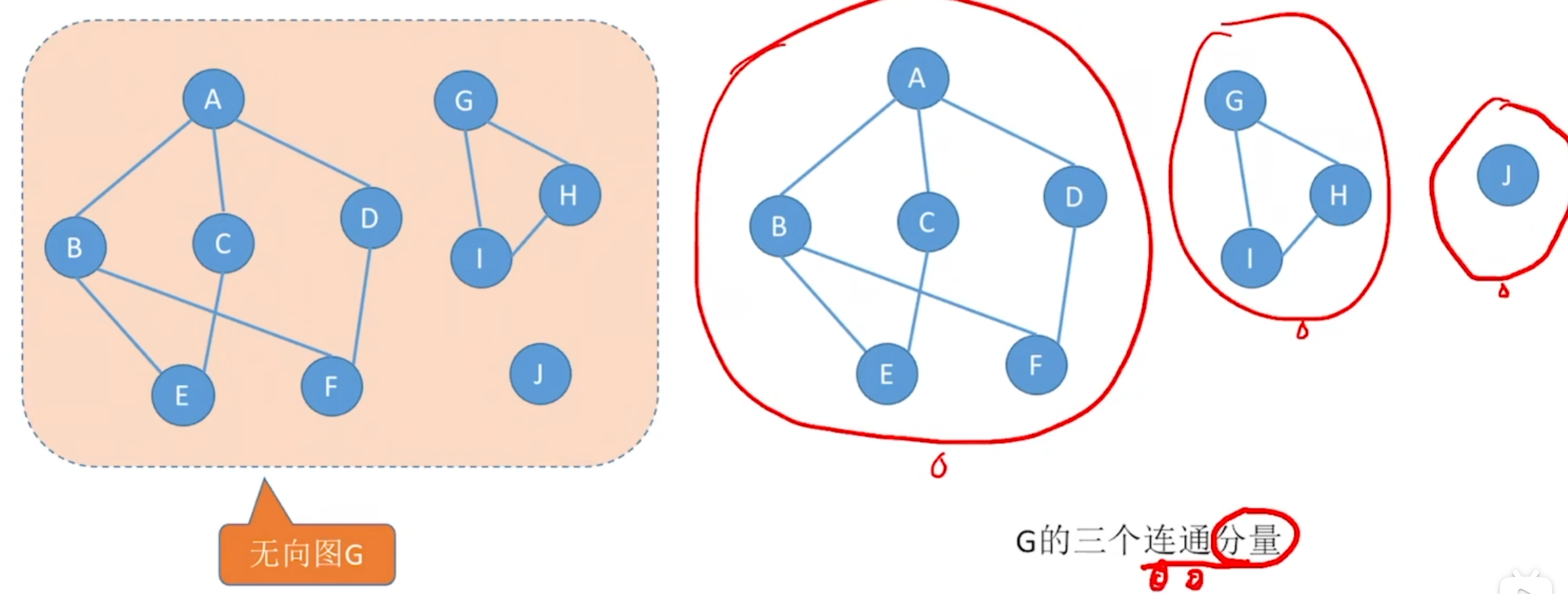 无向图中的极大连通子图称为连通分量(子图必须连通,且包含尽可能多的顶点和边)