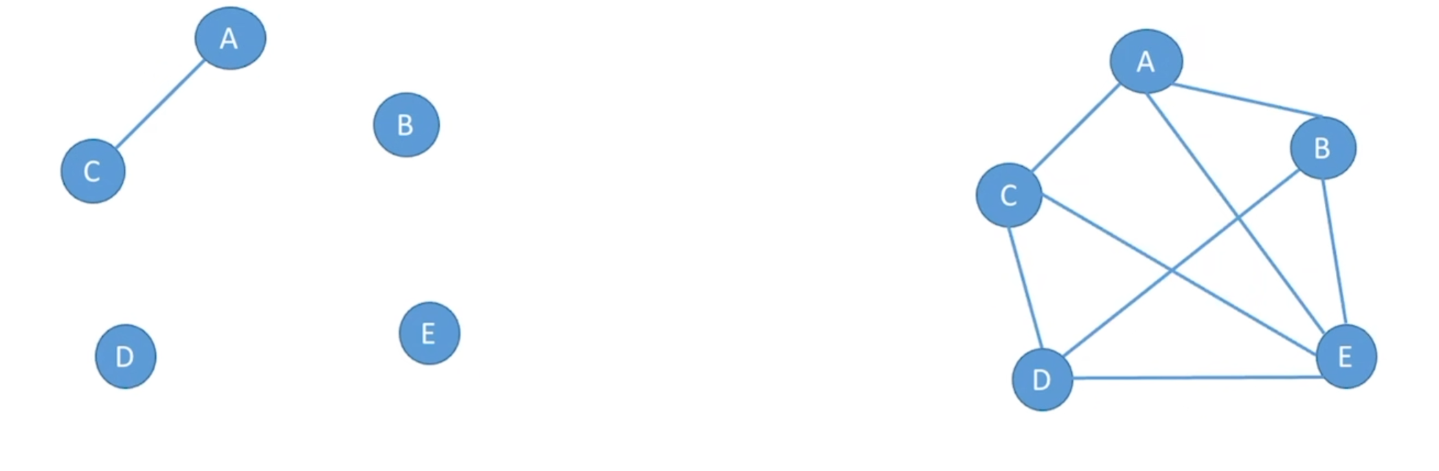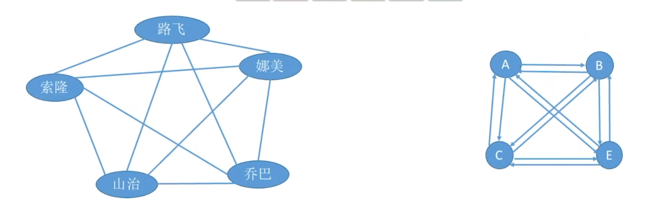 - 无向完全图——无向图中任意两个顶点之间都存在边