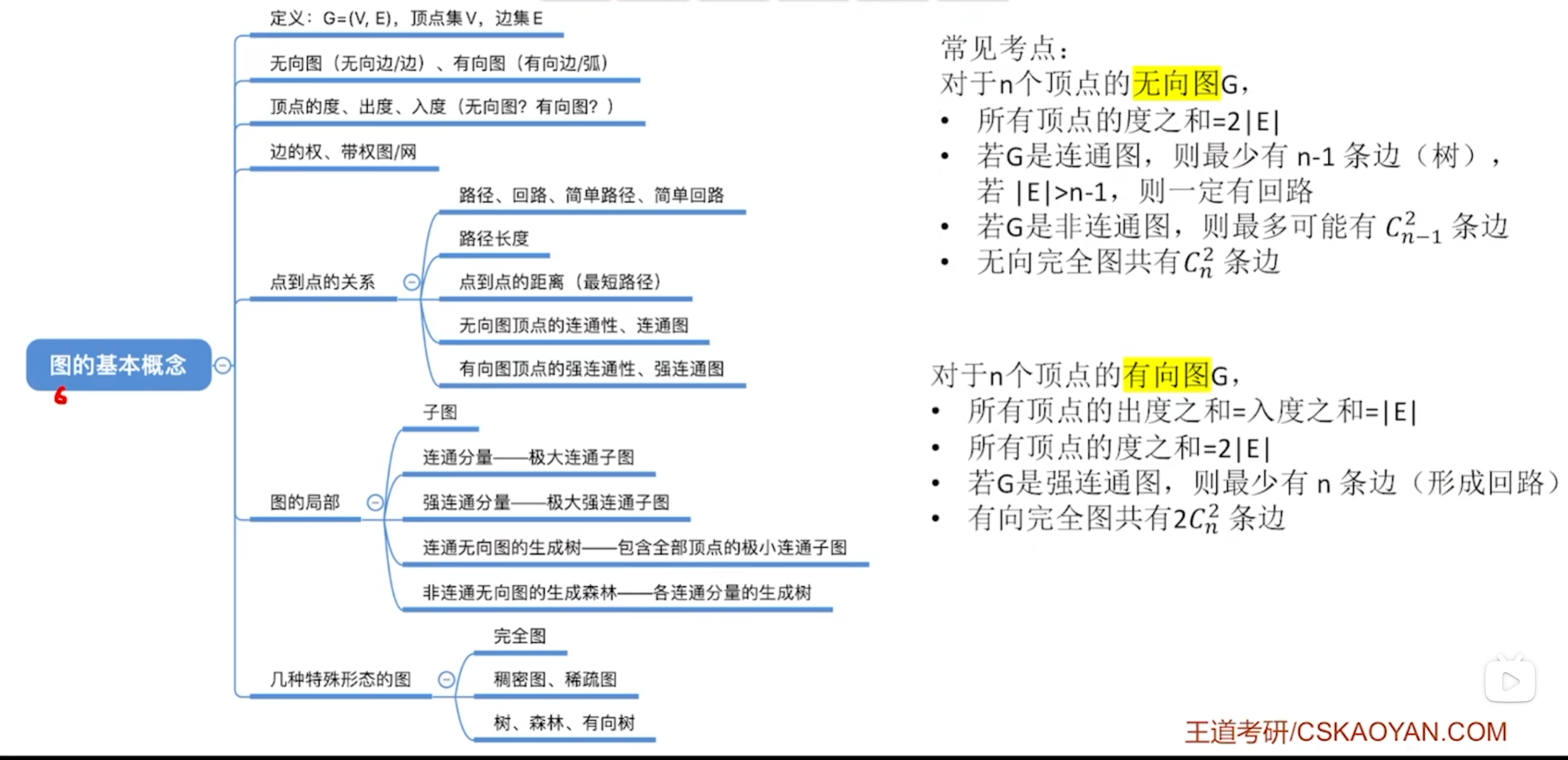 常见考点:n个顶点的图,若$|E|>n-1$,则一定有回路 - 有向树——一个顶点的入度为0,其余顶点的入度均为1的有向图,称为有向树