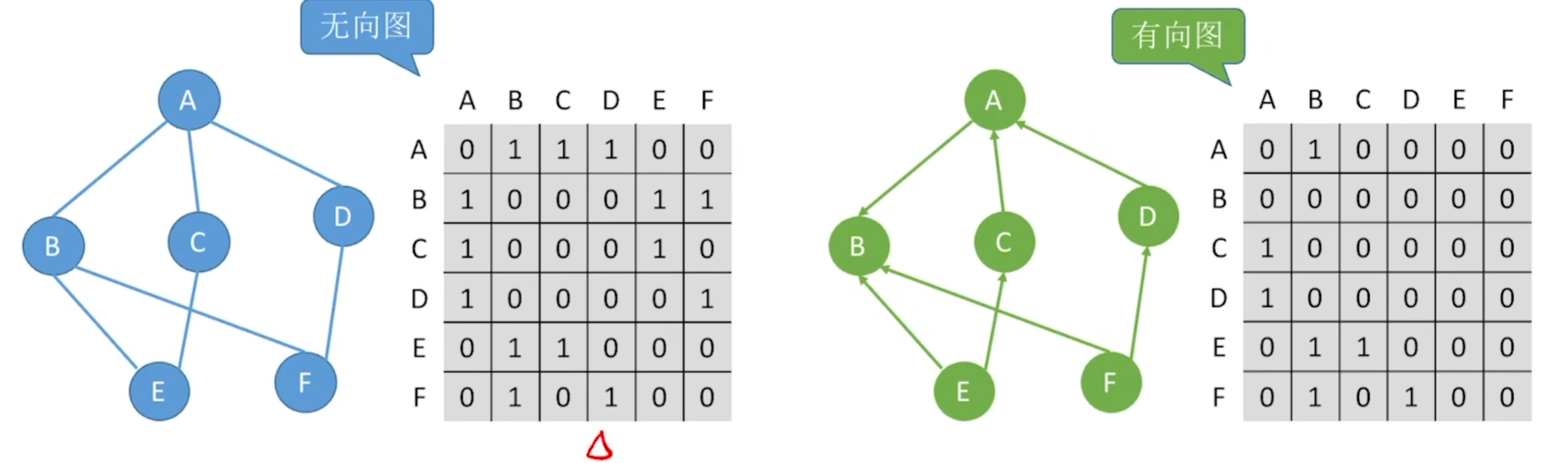 - 无向图:查看对应结点所在行和列