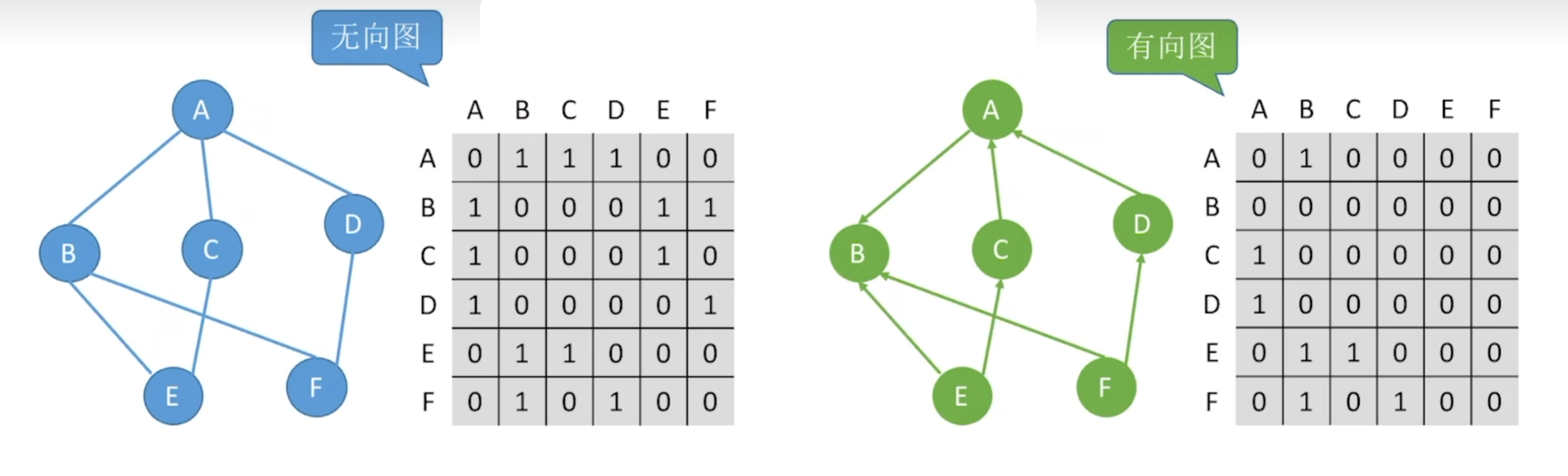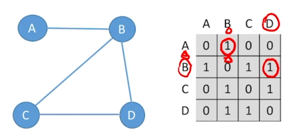 - 邻接矩阵:直接看矩阵对应位置的值是否为1