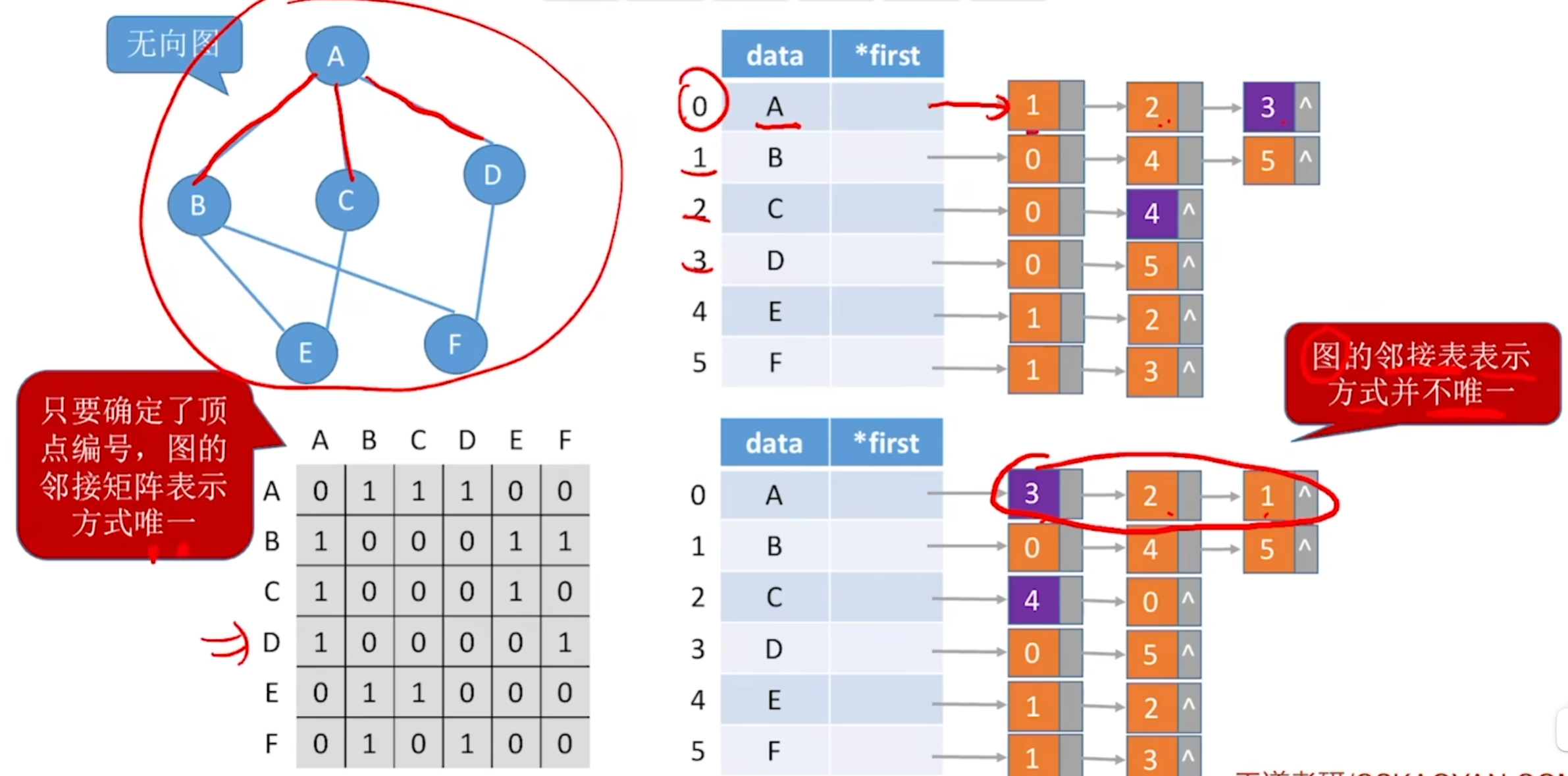 - 无向图:查看对应结点的链表